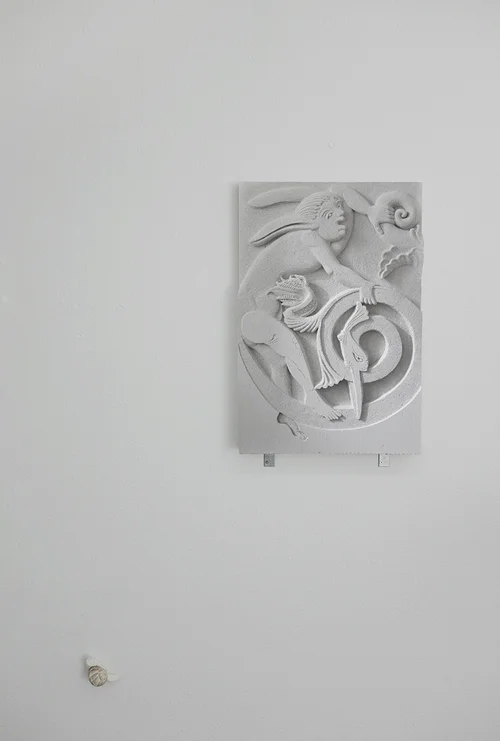 Sif Itona Westerberg’s wall reliefs take their starting point from weathered medieval corbels and bleached out frescos. Lethe – meaning oblivion or forgetfulness in classic Greek – was one of the five rivers in Hades. It was said to be running through the cave of Hypnos and according to legend was omitted light and sound.